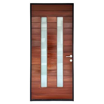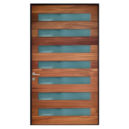 Puerta para interior de Parota, Nogal, Tzalám, Caoba, Cedro, Maple o Encino Americano modelo Indé según diseño a detalle en planos con el